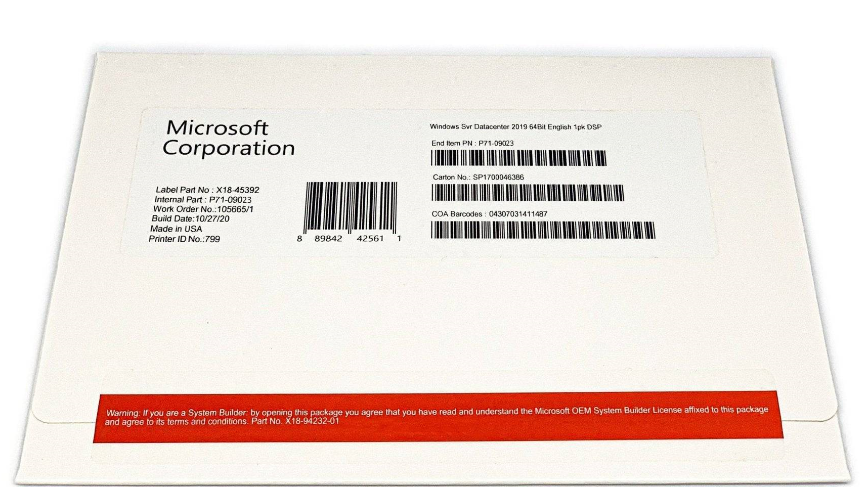 Microsoft Windows Server 2019 Datacenter 64Bit English 1pk DSP OEI DVD 16 Core